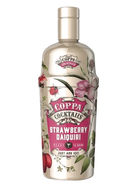 Strawberry Daiquiri is a very fruity cocktail made with premium rum, lime juice and fresh strawberries. Pour straight from the fridge into your glass of choice over crushed ice. Optional: Garnish with a strawberry. By the pool or in your living room, the Coppa Cocktails Strawberry Daiquiri is best enjoyed in great company.