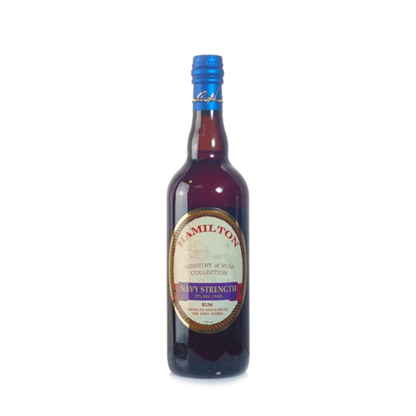 Hamilton Navy Strength Rum is a careful blend of Jamaican and Guyanese rums from Worthy Park and Demerara Distillers Ltd. On the palate, rich notes of exotic spice, banana, tobacco and smoky oak blend with flavors of dried fruit and honey.