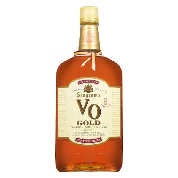 “Seagram’s VO Gold is a blend of individually selected whiskies, none less than eight years old. Made from pedigree grains and the purest Canadian waters.”