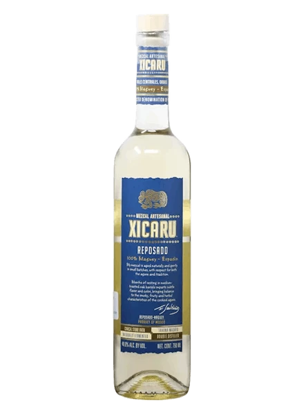 “Xicaru Reposado is made with 100 agave espadin cooked in a stove oven with mesquite and ocote woods. For two to four months, Xicaru Reposado rests in medium-toasted American oak barrels.”